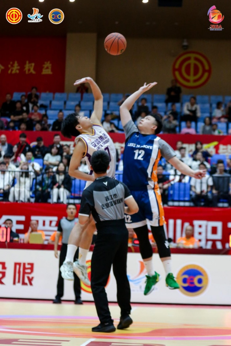 开幕式后,揭幕战在安踏集团与利郎集团的职工球队间展开。两队球员身着标志性队服,将生产线上的默契转化为赛场上的战术配合,用精彩激烈的对决打响本次企BA联赛第一战!