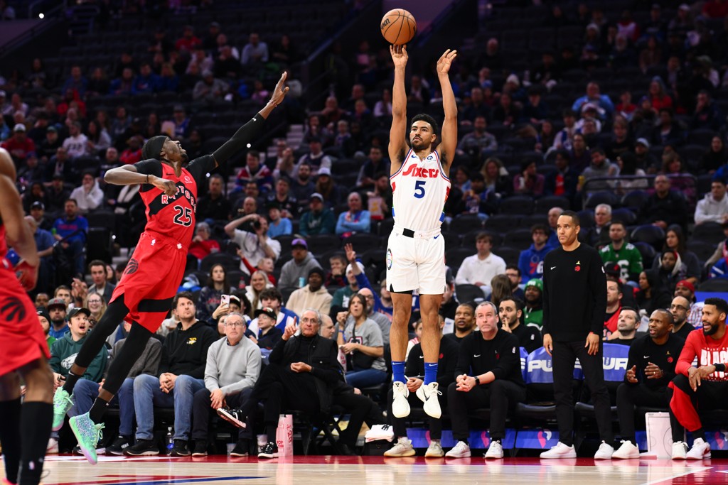 格莱姆斯在76人上季交出了场均21.9分5.2篮板4.5助攻1.5抢断的全面表现,场均三分球命中率37.3%(2.9/7.9),兼顾了三分产量和准度——现今25岁147天,从一个3D球员向多面手进化,前途不可限量。