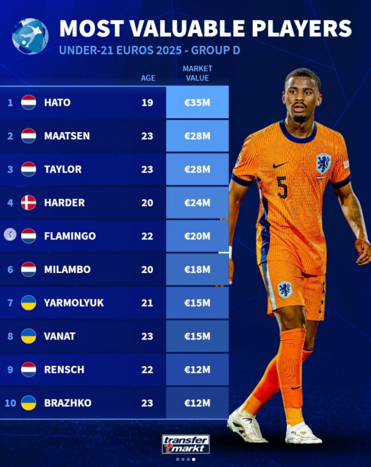 1、哈托:荷兰,3500万欧,19岁